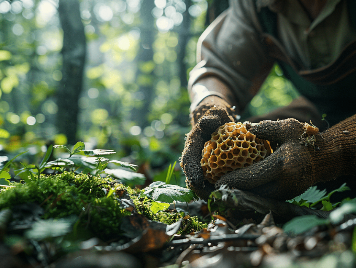 La première étape consiste à bien observer le sol et les alentours. Les morilles, souvent camouflées par leur couleur, se dissimulent sous les feuilles mortes et les mousses. Une attention particulière doit être portée aux zones récemment perturbées, comme les coupes d’arbres ou les coulées d’animaux.
